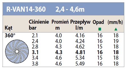 Ręcznie regulowane dysze rotacyjne o zmiennym kącie i zasięgu. 2,4-4,6 M