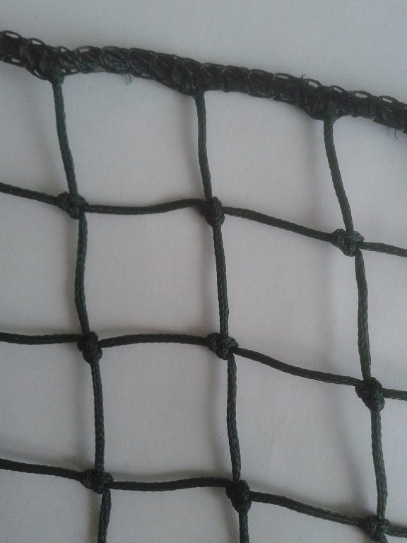 siatka na piłkochwyt oczka 100x100mm obszywana ,grubość linki 3mm, kolor ciemno zielony ,obszycie kolor czarny,